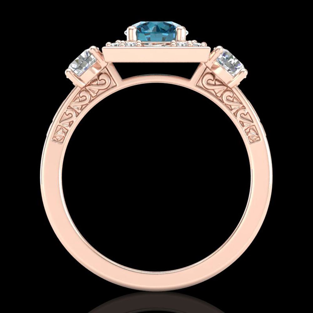 REF-178Y2X - SKU: 38175 ---- 1.55 ctw Intense Blue Diamond Art Deco 3 Stone Ring 18k Rose Gold