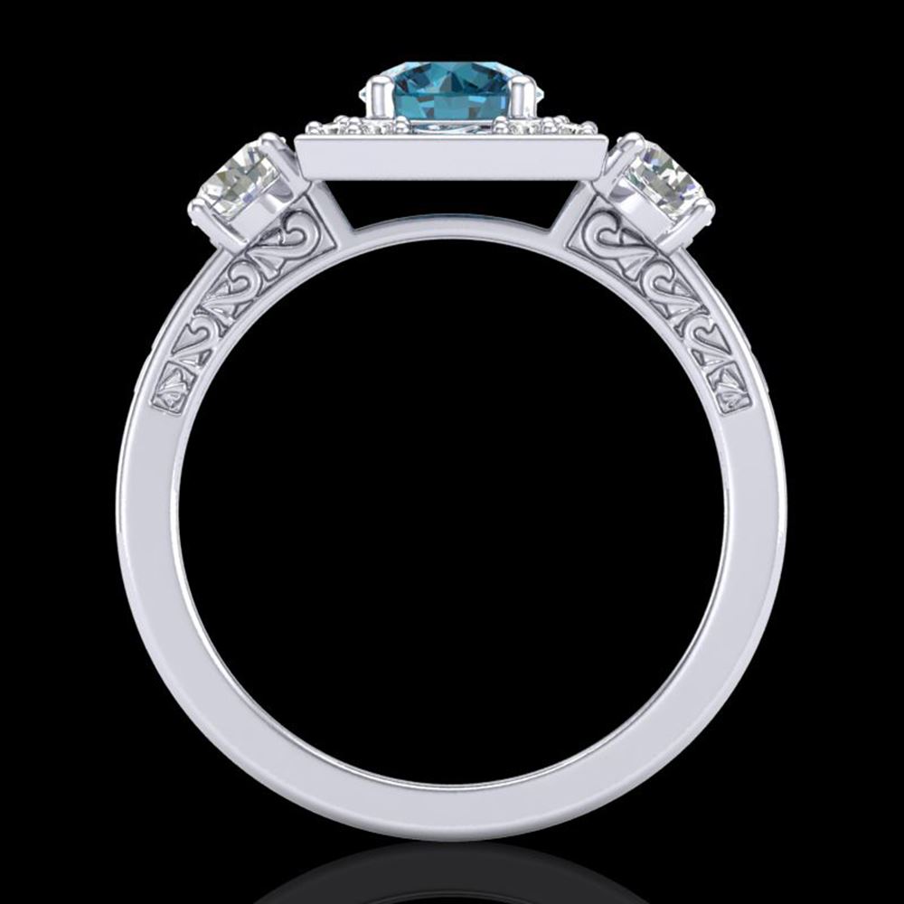 REF-178R2K - SKU: 38174 ---- 1.55 ctw Intense Blue Diamond Art Deco 3 Stone Ring 18k White Gold