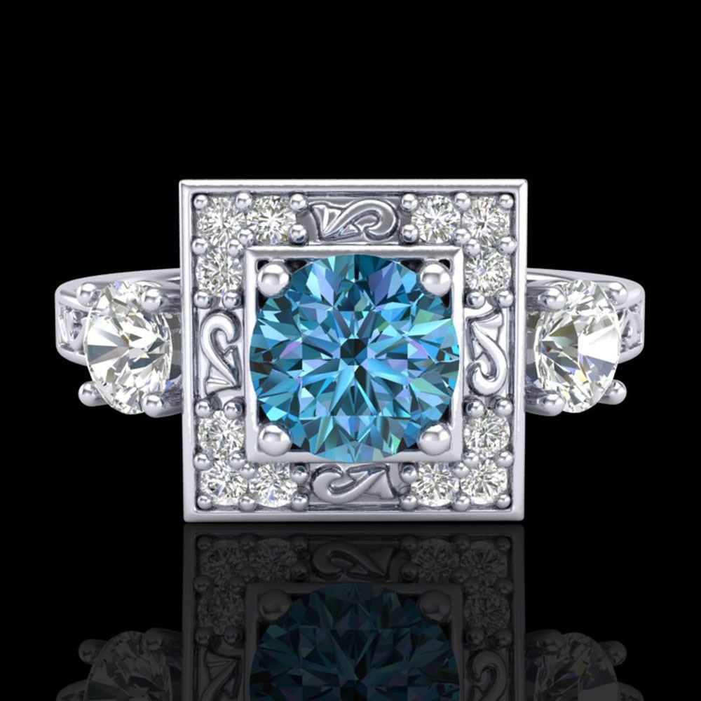 SKU: 38174 ---- 1.55 ctw Intense Blue Diamond Art Deco 3 Stone Ring 18k White Gold