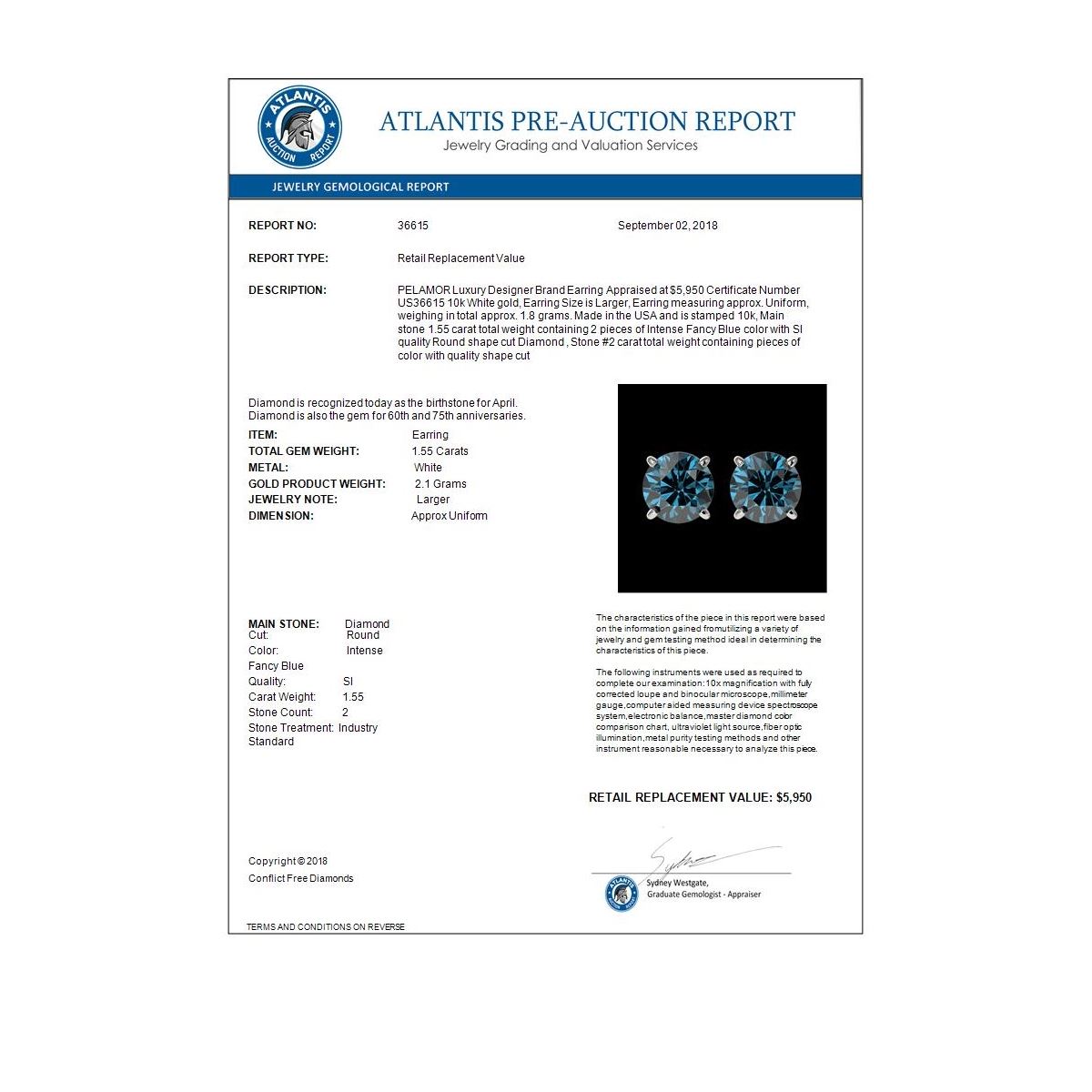 1.55 ctw Intense Blue Diamond Stud Earrings 10K White Gold