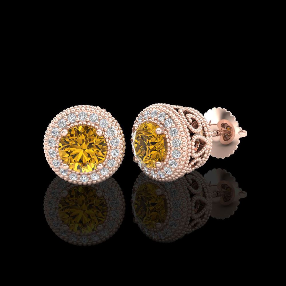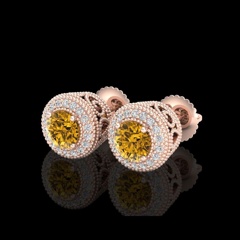 1.55 ctw Intense Fancy Yellow Diamond Art Deco Earrings 18K Rose Gold