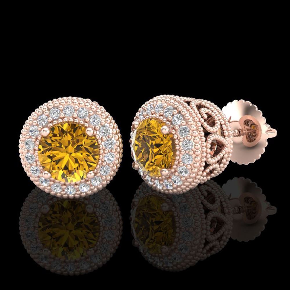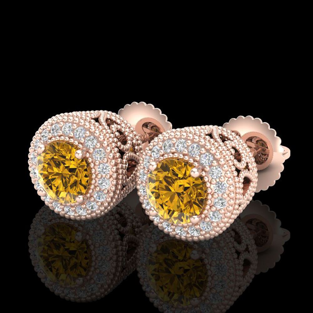 REF-281R8K - SKU: 37659 ---- 1.55 ctw Intense Fancy Yellow Diamond Art Deco Earrings 18k Rose Gold