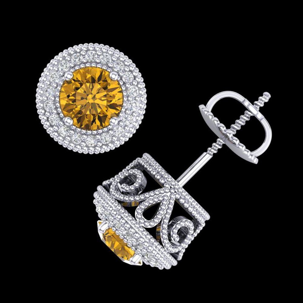 REF-281W8H - SKU: 37658 ---- 1.55 ctw Intense Fancy Yellow Diamond Art Deco Earrings 18k White Gold