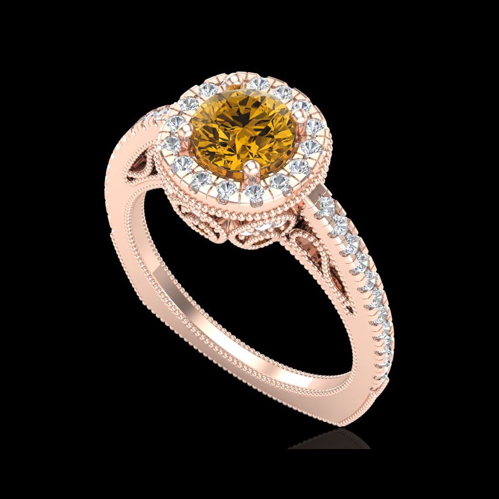 1.55 ctw Intense Fancy Yellow Diamond Art Deco Ring 18K Rose Gold