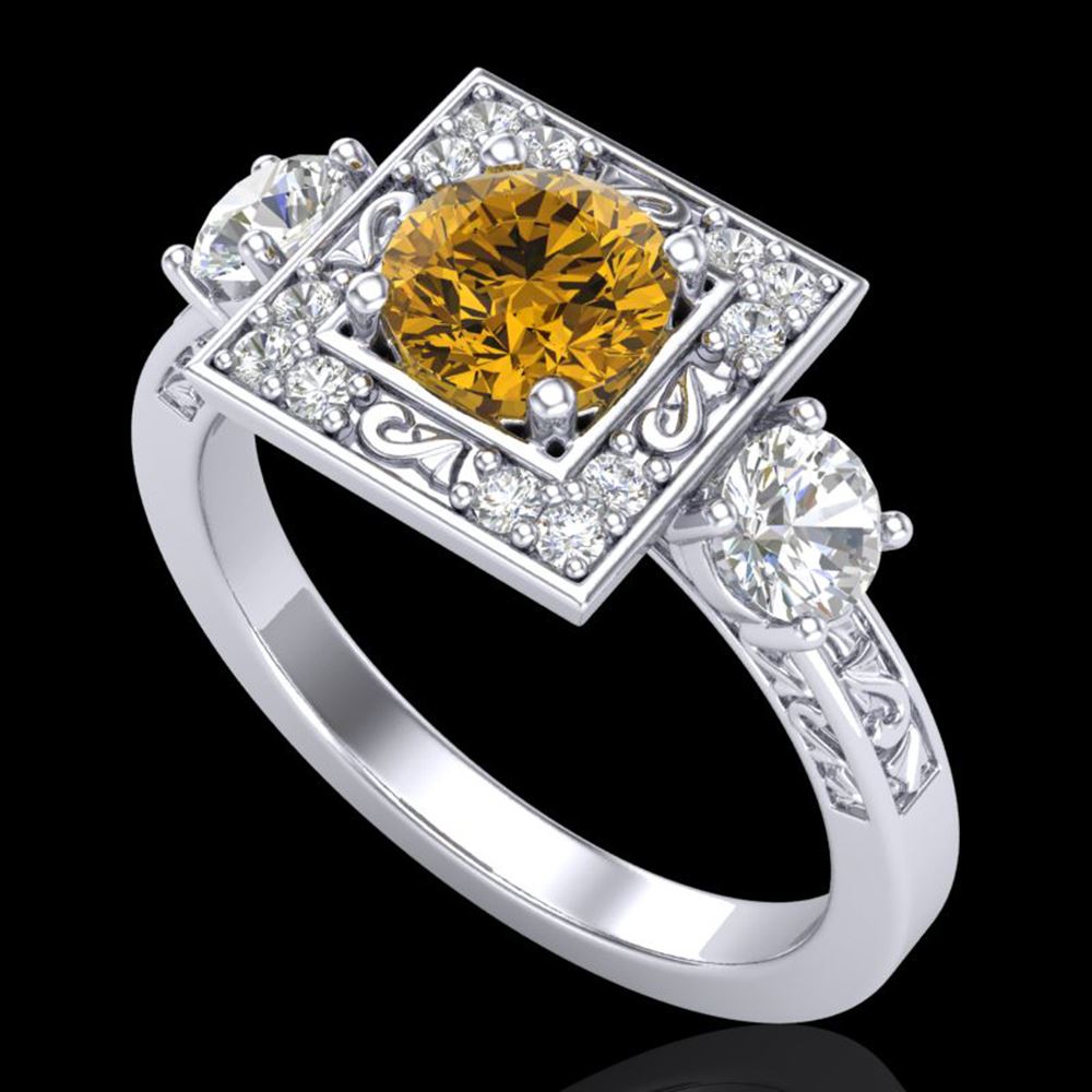 REF-178A2N - SKU: 38176 ---- 1.55 ctw Intense Fancy Yellow Diamond Art Deco Ring 18k White Gold