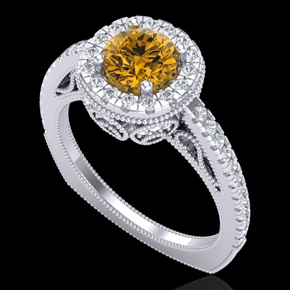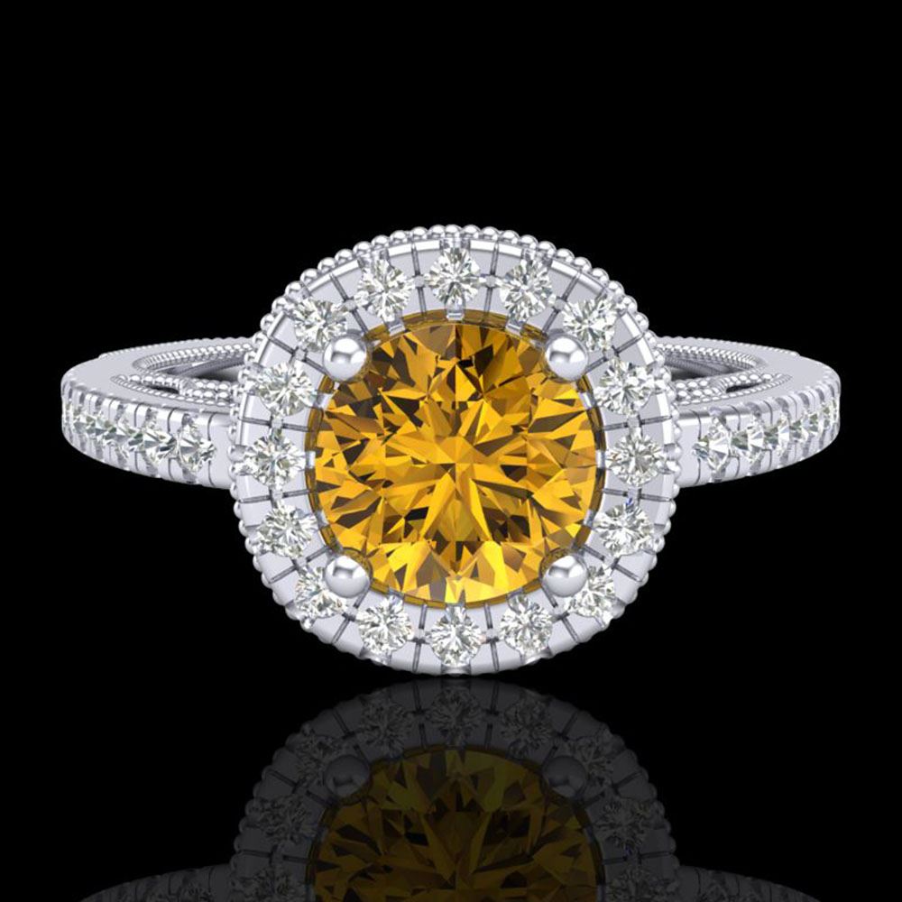 REF-200K2Y - SKU: 37987 ---- 1.55 ctw Intense Fancy Yellow Diamond Art Deco Ring 18k White Gold
