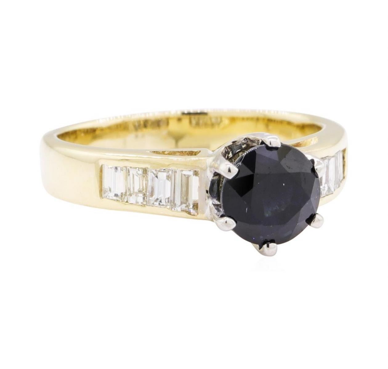 One lady's ring featuring: 14KT yellow and white gold weighing 3.9 grams containing one sapphire weighing 1.55ct and diamonds weighing 0.30 ctw.