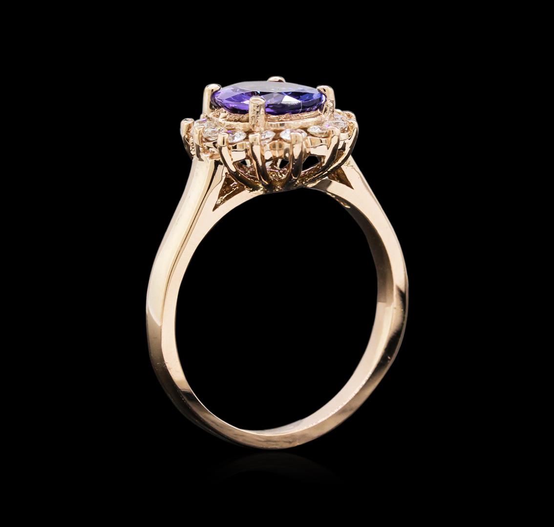 One ring featuring: 14KT rose gold weighing 4.64 grams containing one tanzanite with a total weight of 1.55ct and diamonds with a total weight of 0.35ct.