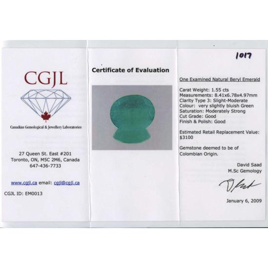 Fabulous stone hard to capture in photos due to depth of color; with gemologist appraisal card; typical emerald clarity SI2 and well colored