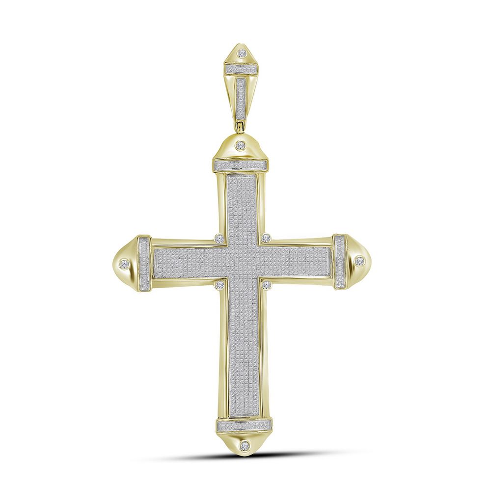 REF-157W5K- SKU: GD66921 ---- 1.56 CTW Mens Pave-set Diamond Cross Crucifix Charm Pendant 10KT Yellow Gold