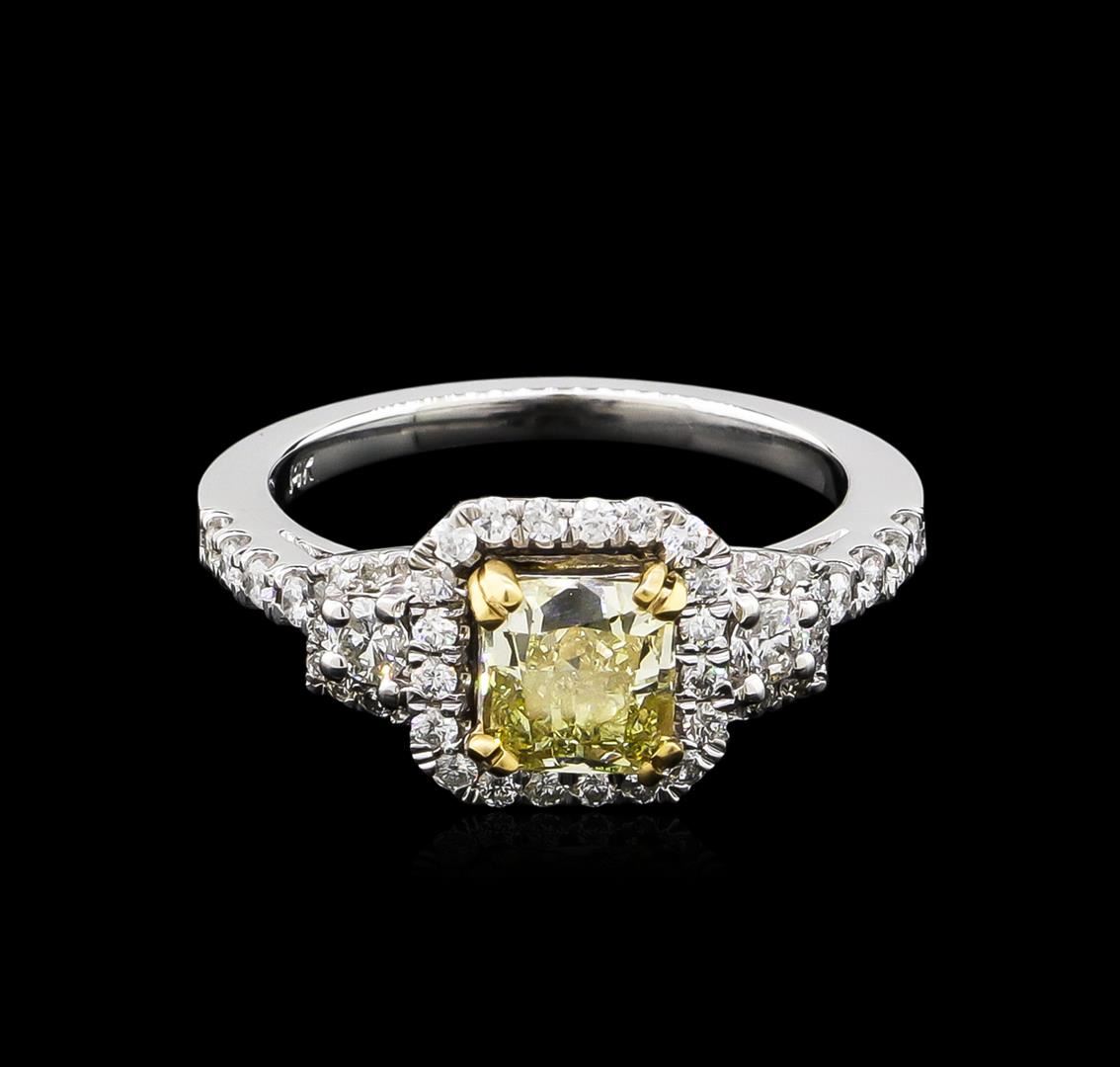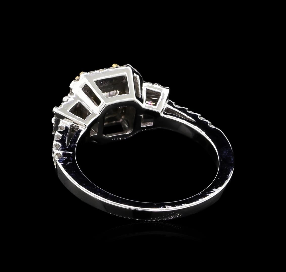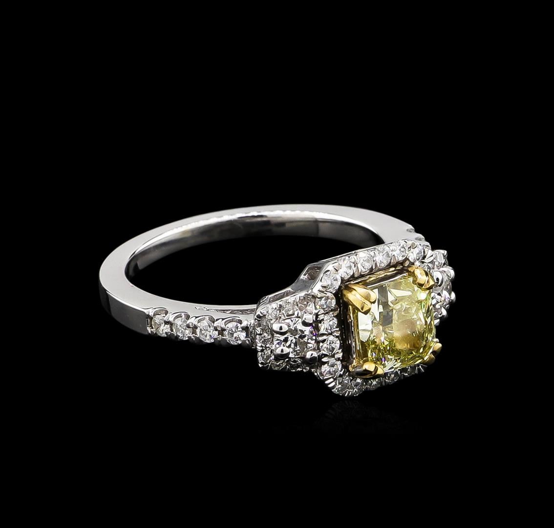 One electronically tested 14KT white gold lady's cast wedding ring with a cathedral shank with a bright polish finish. The featured lady's ring has a shank measuring 1.71 millimeters wide. Identified with markings of "14K". Condition is new, good workmanship. Containing: One prong set cushion cut diamond, measuring 5.74 x 5.53 x 3.75mm (depth est.) approximate weight of 1.01ct. Colored gemstones are presumed to have been subjected to commonly used enhancement processes. Graded in the setting. Clarity: VS-2 Cut Very Good Two prong set round brilliant cut diamonds, measuring 2.70 - 2.60 x 1.64mm (depth est.) approximate total weight of 2 Stones = 0.14ct. Graded in the setting. Clarity: SI-2. Color: H - I. Cut Good Eight prong set round brilliant cut diamonds, measuring 1.60 - 1.50 x 0.93mm (depth est.) approximate total weight of 8 Stones = 0.11ct. Graded in the setting. Clarity: SI-2 to I-1. Color: G - Good Thirty-Four prong set round brilliant cut diamonds, measuring 1.40 - 1.20 x 0.81mm (depth est.) approximate total weight of 34 Stones = 0.30ct. Graded in the setting. Clarity: SI-1 to I-1. Color: G - I. Cut Good. Total Weight of Diamonds 1.56ct. Total Weight of Ring 5.00gm. GAS Appraised at $14,680.00.