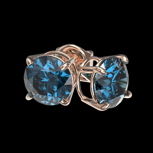 REF-127W5F -36618 ---- 1.57 CTW Certified Intense Blue SI Diamond Solitaire Stud Earrings 10K Rose Gold ---- Luxury Designer Brand Earring Appraised at $10,200 Certificate Number US36618 10k Rose gold, Earring Size is Larger, Earring measuring approx. Uniform, weighing in total approx. 1.8 grams. Made in the USA and is stamped 10k, Main stone 1.57 carat total weight containing 2 pieces of Intense Fancy Blue color with SI quality Round shape cut Diamond , Stone #2 carat total weight containing pieces of color with quality shape cut