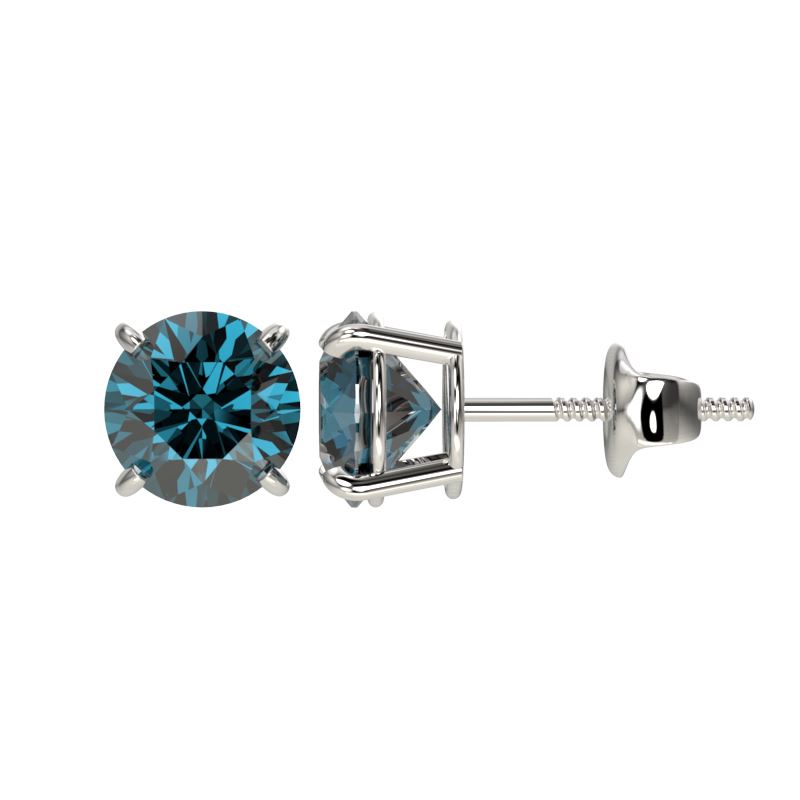 1.57 CTW Certified Intense Blue SI Diamond Solitaire Stud Earrings 10K White Gold ---- Luxury Designer Brand Earring Appraised Retail Price at $10,200 ---- SKU Number US36617 10k White gold Earring Size is Larger, Earring measuring approx. Uniform, weighing in total approx. 1.8 grams. Made in the USA and is stamped 10k, Main stone 1.57 carat total weight containing 2 pieces of Intense Fancy Blue color with SI quality Round shape cut Diamond , Stone #2 carat total weight containing pieces of color with quality shape cut