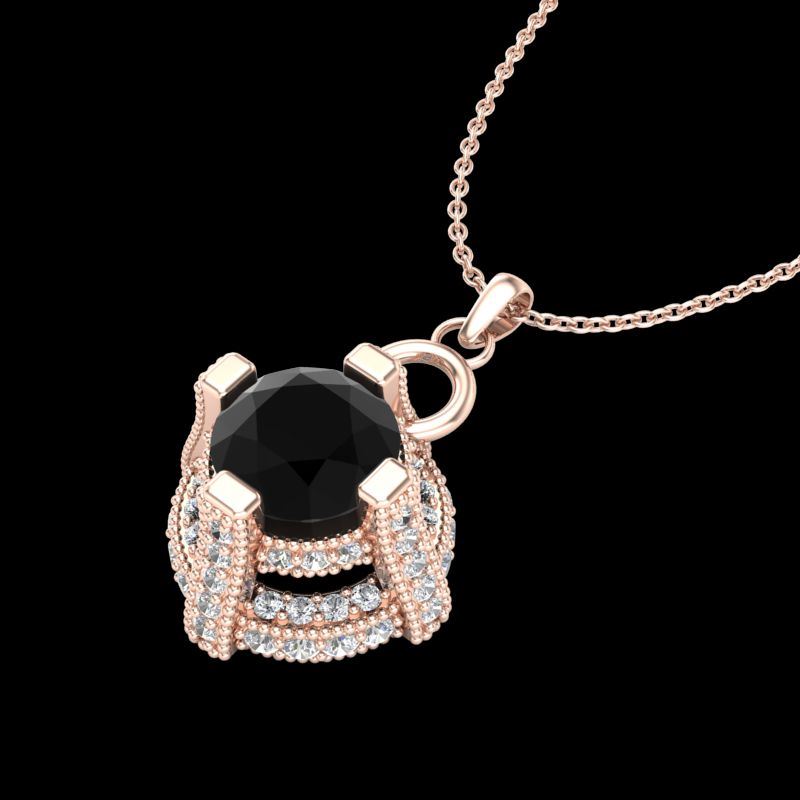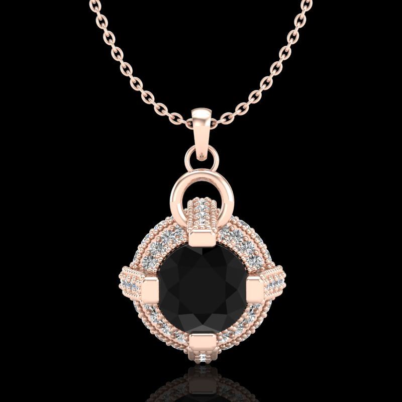 REF-106N4Y -37633 ---- 1.57 CTW Fancy Black Diamond Solitaire Micro Pave Stud Necklace 18K Rose Gold ---- Luxury Designer Brand NECKLACE Appraised at $7,000 Certificate Number US37633 18k Rose gold, NECKLACE Size is 16 Inches, NECKLACE measuring approx. Uniform, weighing in total approx. 5 grams. Made in the USA and is stamped 18k, Main stone 0.75 carat total weight containing 1 pieces of Black Opaque color with VS quality Round shape cut Diamond , Stone #2 0.82 carat total weight containing 64 pieces of H-I color with VS/SI quality Round shape cut Diamond