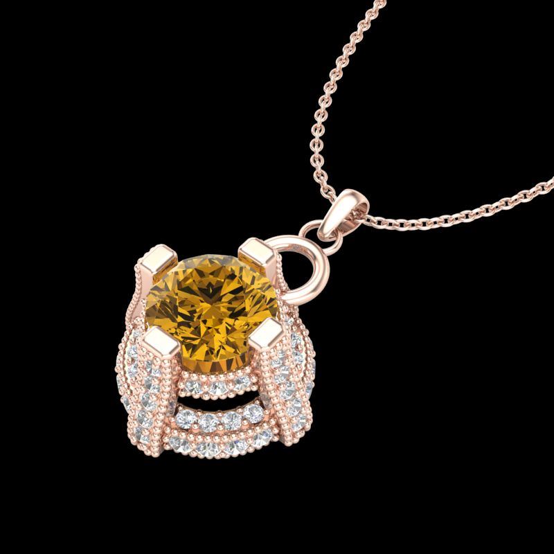 REF-147X3T -37638 ---- 1.57 CTW Intense Fancy Yellow Diamond Micro Pave Stud Necklace 18K Rose Gold ---- Luxury Designer Brand NECKLACE Appraised at $9,700 Certificate Number US37638 18k Rose gold, NECKLACE Size is 16 Inches, NECKLACE measuring approx. Uniform, weighing in total approx. 5 grams. Made in the USA and is stamped 18k, Main stone 0.75 carat total weight containing 1 pieces of Intense Fancy Yellow color with SI quality Round shape cut Diamond , Stone #2 0.82 carat total weight containing 64 pieces of H-I color with VS/SI quality Round shape cut Diamond
