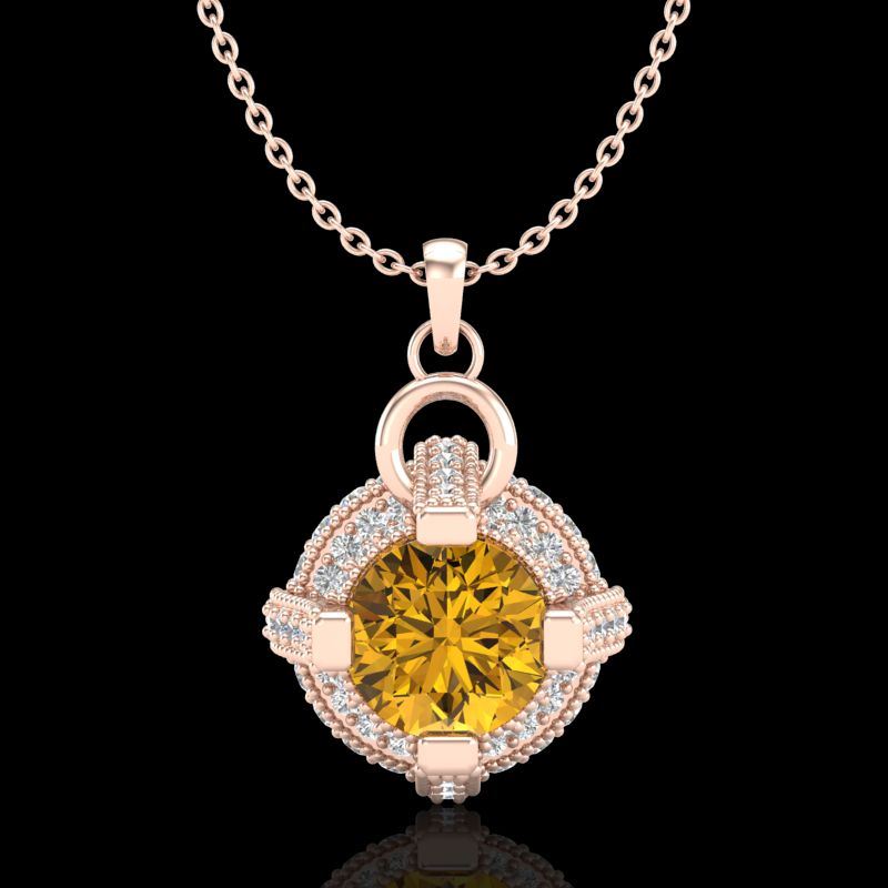 REF-147X3T -37638 ---- 1.57 CTW Intense Fancy Yellow Diamond Micro Pave Stud Necklace 18K Rose Gold ---- Luxury Designer Brand NECKLACE Appraised at $9,700 Certificate Number US37638 18k Rose gold, NECKLACE Size is 16 Inches, NECKLACE measuring approx. Uniform, weighing in total approx. 5 grams. Made in the USA and is stamped 18k, Main stone 0.75 carat total weight containing 1 pieces of Intense Fancy Yellow color with SI quality Round shape cut Diamond , Stone #2 0.82 carat total weight containing 64 pieces of H-I color with VS/SI quality Round shape cut Diamond