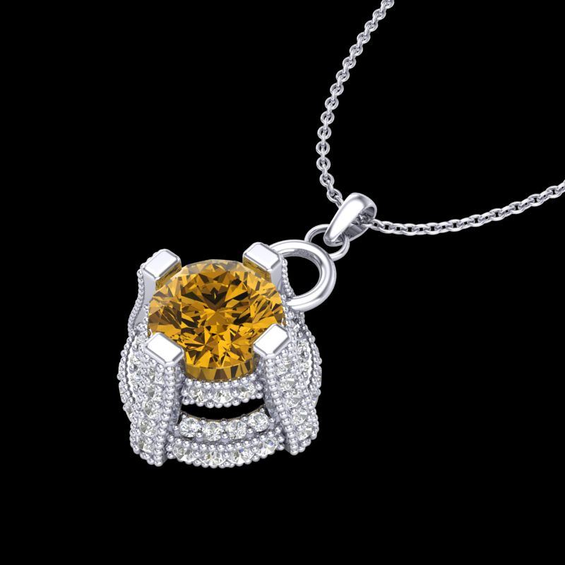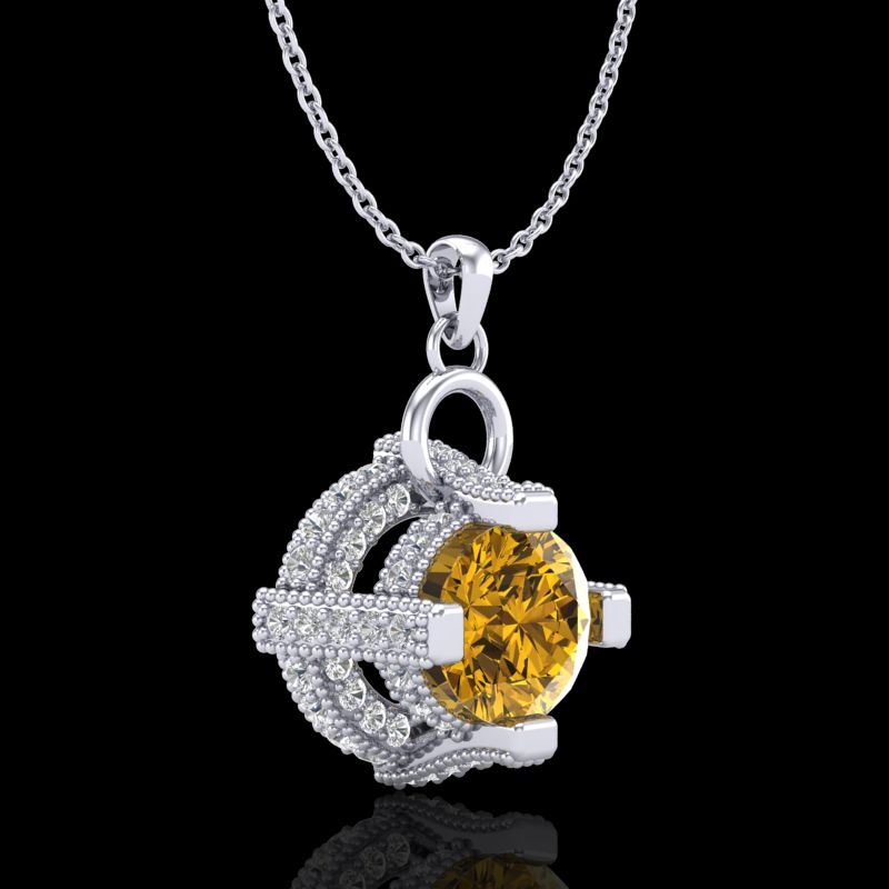 REF-147H3A -37637 ---- 1.57 CTW Intense Fancy Yellow Diamond Micro Pave Stud Necklace 18K White Gold ---- Luxury Designer Brand NECKLACE Appraised at $9,700 Certificate Number US37637 18k White gold, NECKLACE Size is 16 Inches, NECKLACE measuring approx. Uniform, weighing in total approx. 5 grams. Made in the USA and is stamped 18k, Main stone 0.75 carat total weight containing 1 pieces of Intense Fancy Yellow color with SI quality Round shape cut Diamond , Stone #2 0.82 carat total weight containing 64 pieces of H-I color with VS/SI quality Round shape cut Diamond