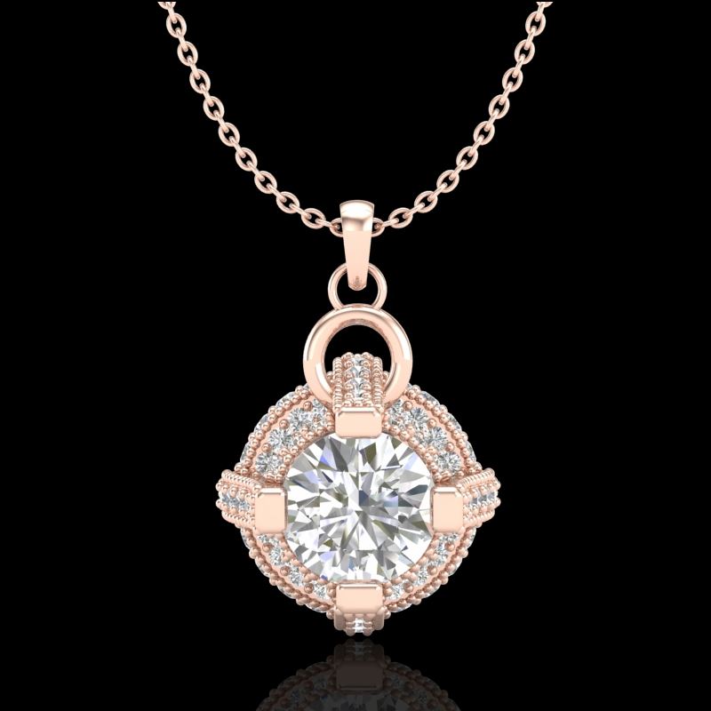 1.57 CTW VS/SI Diamond Micro Pave Stud Necklace 18K Rose Gold ---- Luxury Designer Brand NECKLACE Appraised Retail Price at $12,600 ---- SKU Number US36954 18k Rose gold NECKLACE Size is 16 Inches, NECKLACE measuring approx. Uniform, weighing in total approx. 3.8 grams. Made in the USA and is stamped 18k, Main stone 0.75 carat total weight containing 1 pieces of H-J color with VS/SI quality Round shape cut Diamond , Stone #2 0.82 carat total weight containing 64 pieces of H-I color with VS/SI quality Round shape cut