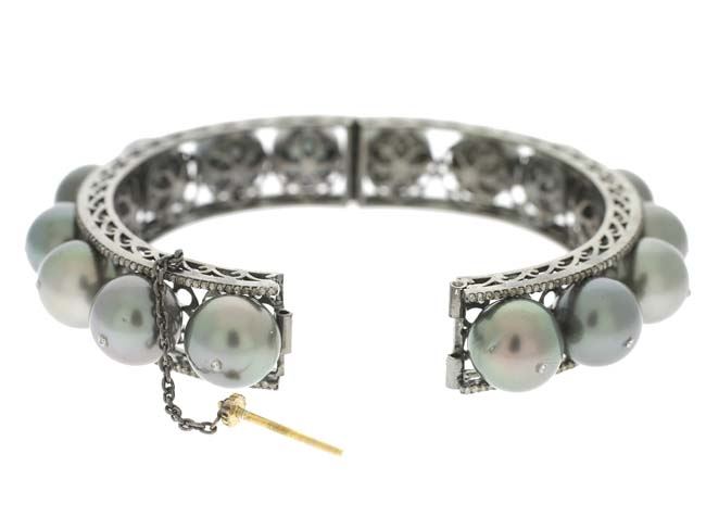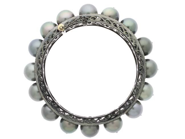 TAHITIANPEARL AND DIAMOND ROUND BANGLE/Diamond Count 1:/Diamond Count 1 TCW:1.57/Diamond Color & Clarity:J-L/I1-I2/Diamond Count 2:/Diamond Count 2 TCW:/Diamond Color & Clarity:/Diamond Count 3:/Diamond Count 3 TCW:/Gemstone Count 1:16/Gemstone Count 1 TCW:/Dimension:/Metal Type:14k Gold Yellow Gold /Weight Gram:1.05over 0.925 SilverSterling Silver /Weight Gram:24.89/Gross Weight: