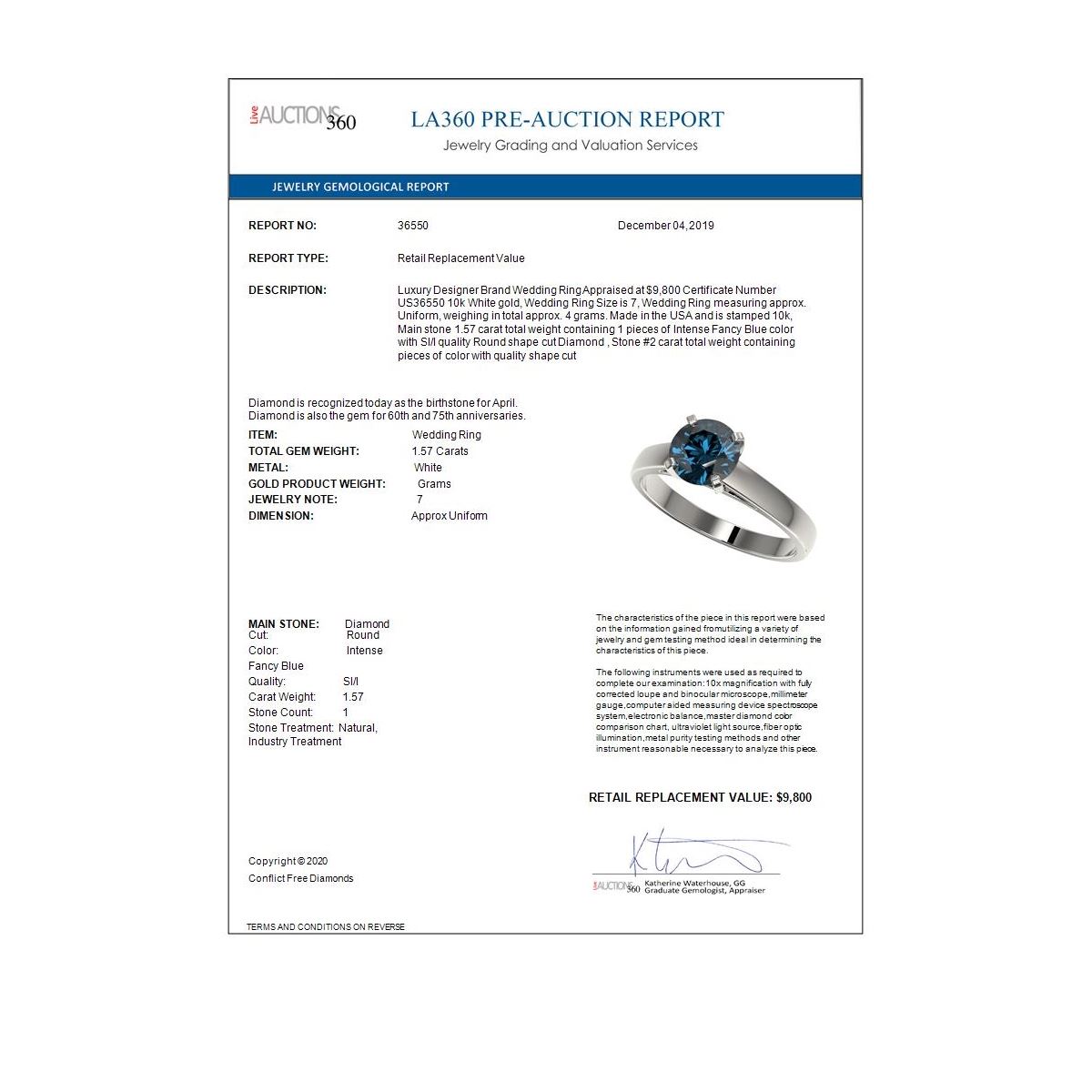 REF-171M8G - SKU: 36550 ---- 1.57 ctw Certified Intense Blue Diamond Engagment Ring 10k White Gold