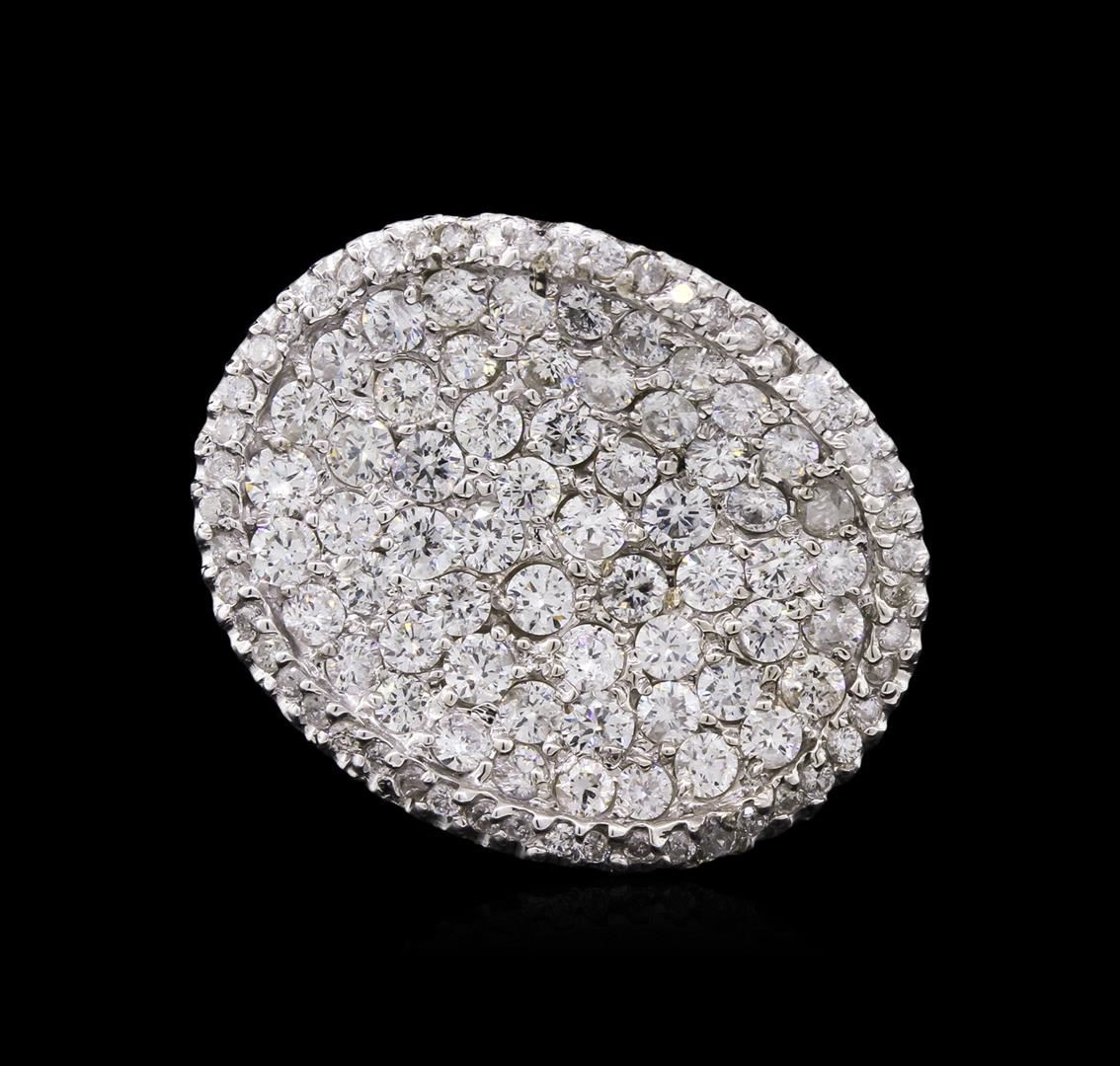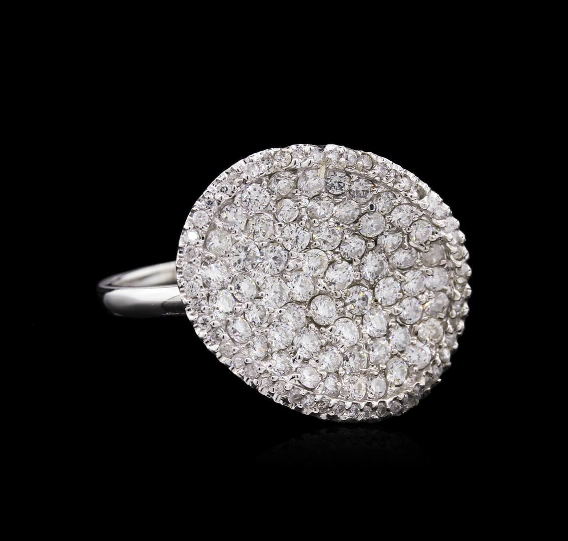 One electronically tested 14KT white gold lady's cast fashion ring with a bright polish finish. The featured lady's ring has a shank measuring 1.9 millimeters wide. Identified with markings of "K14". Condition is new, good workmanship. Containing: Fifty-Six prong set round brilliant cut diamonds, measuring 2.10 - 1.70 x 1.14mm (depth est.) approximate total weight of 56 Stones = 1.32ct. Graded in the setting. Clarity: SI-1 to I-1. Color: H - I. Cut Good Fifty-Two prong set round brilliant cut diamonds, measuring 1.10 - 1.05 x 0.69mm (depth est.) approximate total weight of 52 Stones = 0.25ct. Graded in the setting. Clarity: SI-2 to I-1. Color: H - I. Cut Good. Total Weight of Diamonds 1.57ct. Total Weight of Ring 5.50gm. GAS Appraised at $5,100.00.