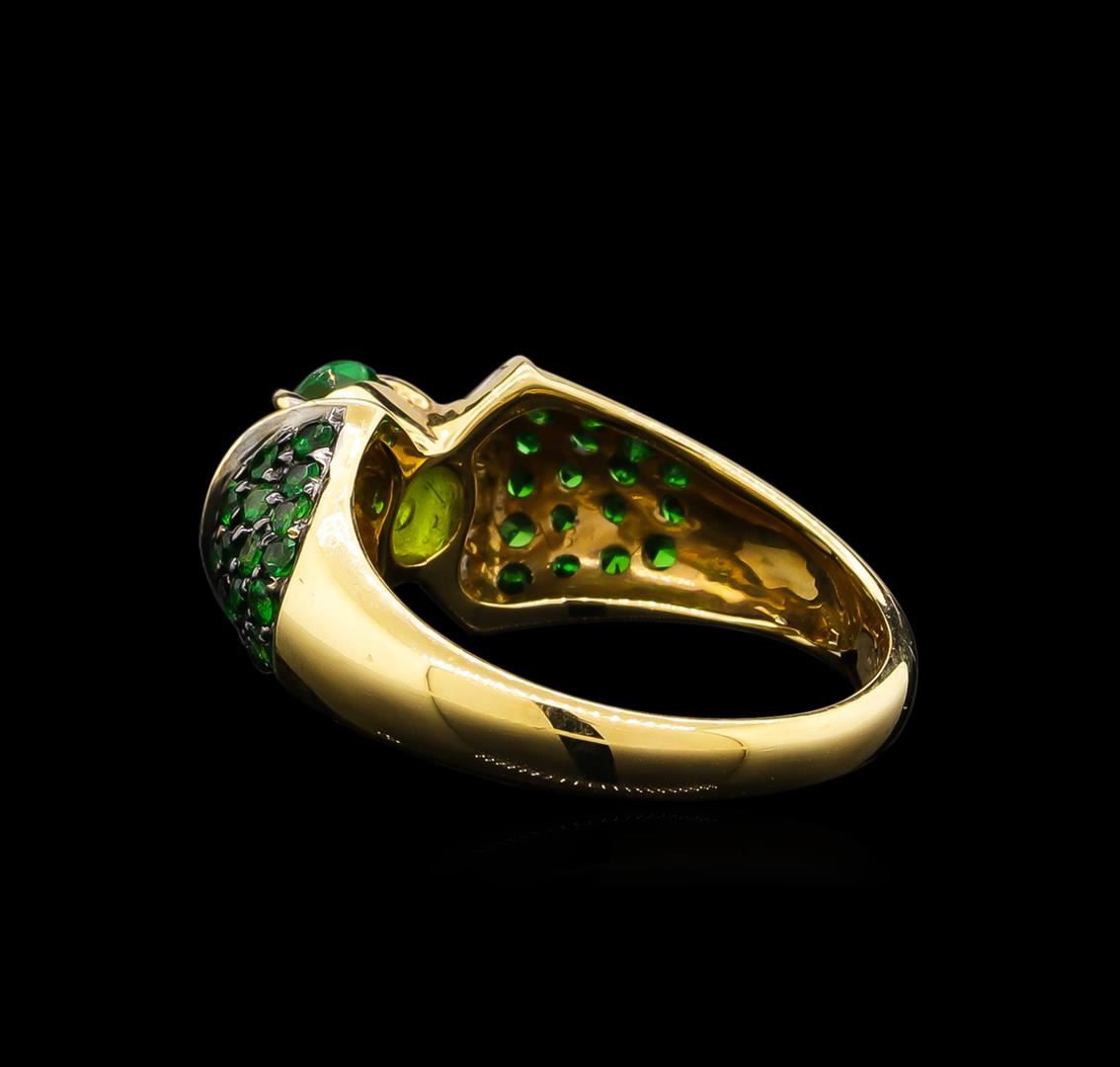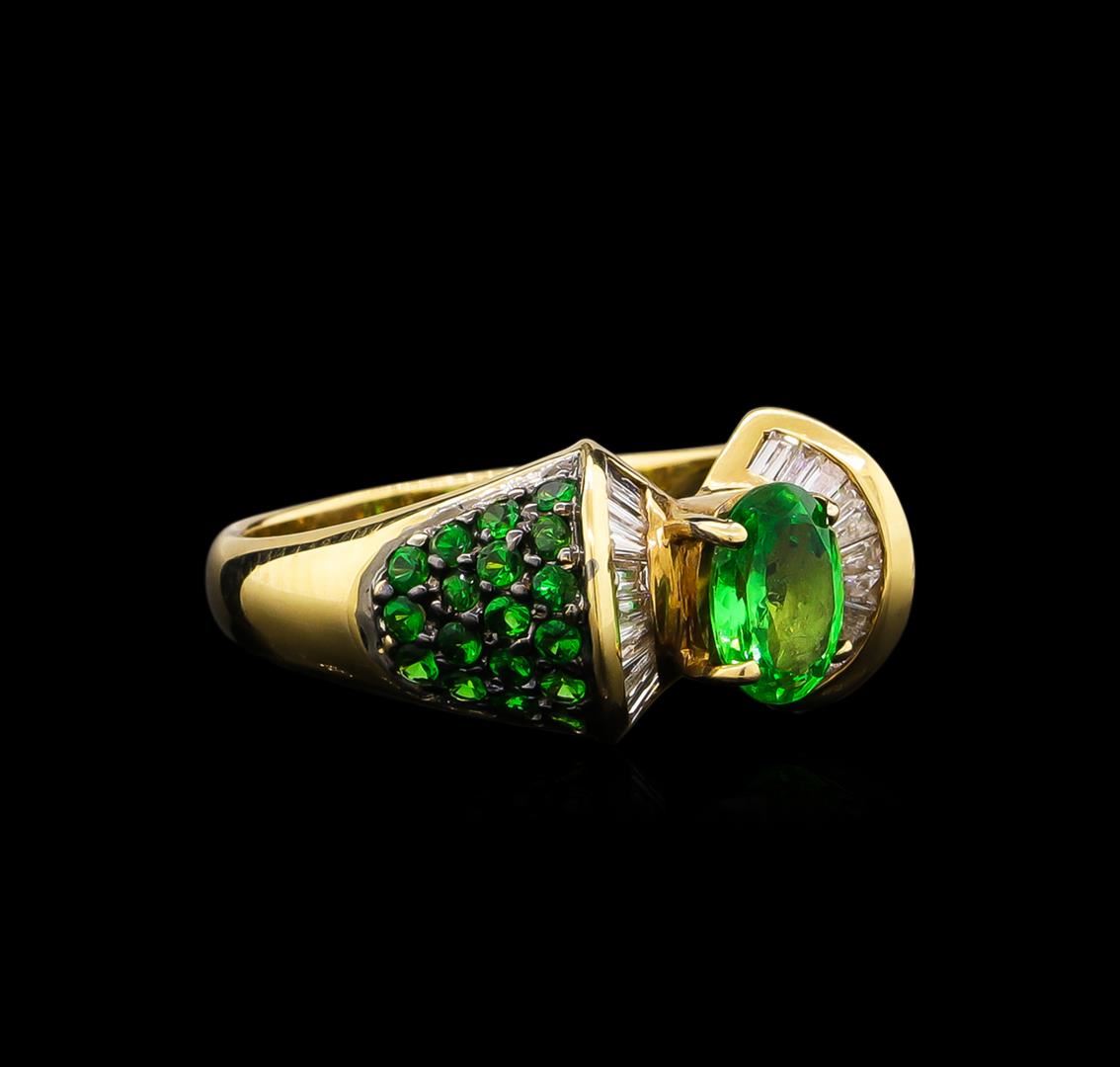 1.57 ctw Tsavorite Garnet and Diamond Ring - 14KT Yellow Gold