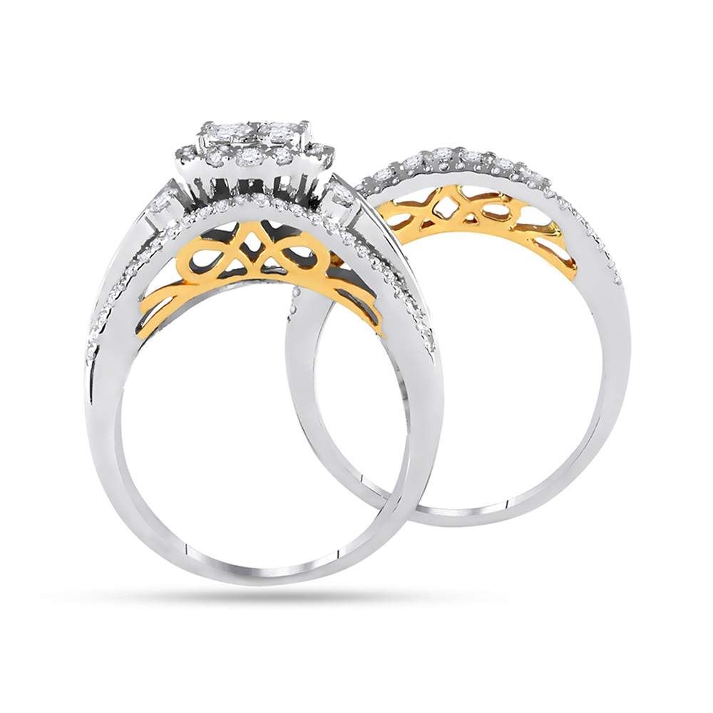 REF-157H5M- SKU: GD118260 ---- 1.58 CTW Diamond Cluster Bridal Engagement Ring 14KT Two-tone Gold