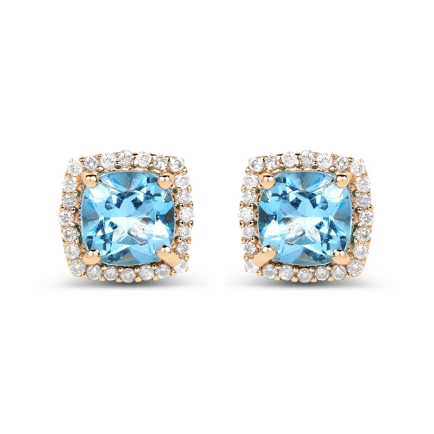 REF-37X2Y ---- 1.58 ctw Swiss Blue Topaz & Diamond Earrings 14K Yellow Gold