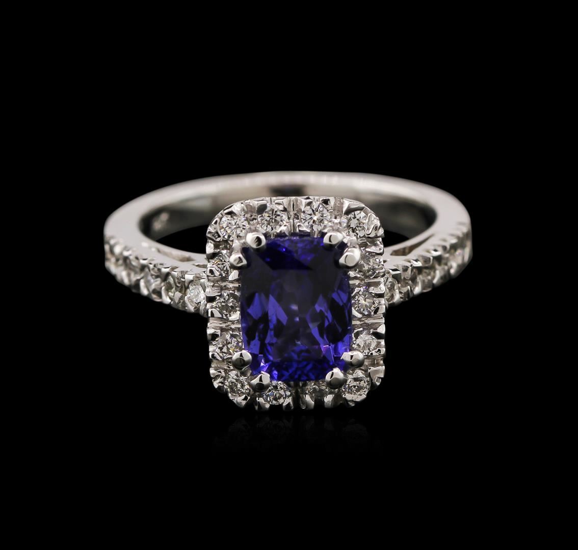 One ring featuring: 14KT white gold weighing 5.00 grams containing one tanzanite center stone with a total weight of 1.58ct and 24 diamonds with a total weight of 0.38ct.
