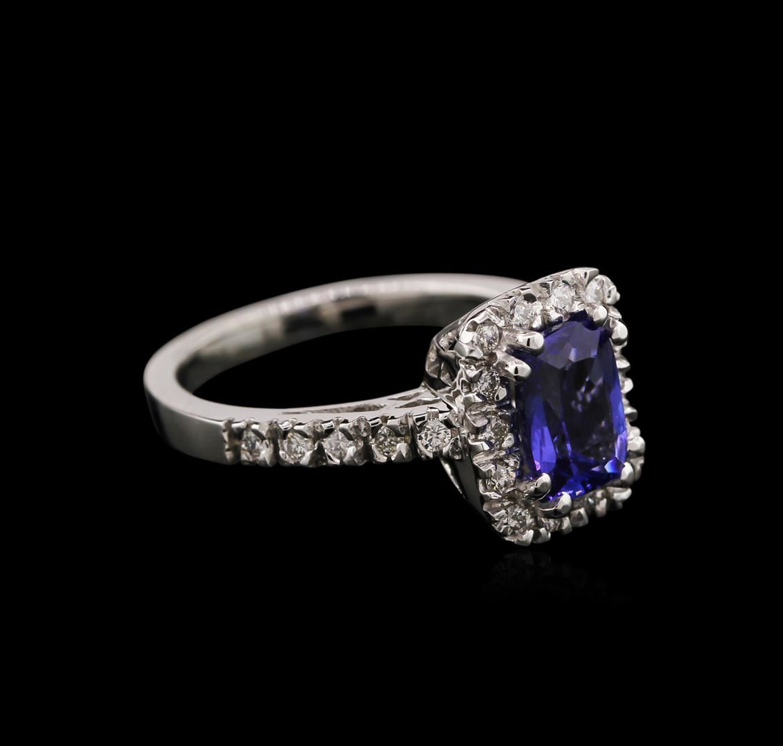 One ring featuring: 14KT white gold weighing 5.00 grams containing one tanzanite center stone with a total weight of 1.58ct and 24 diamonds with a total weight of 0.38ct.