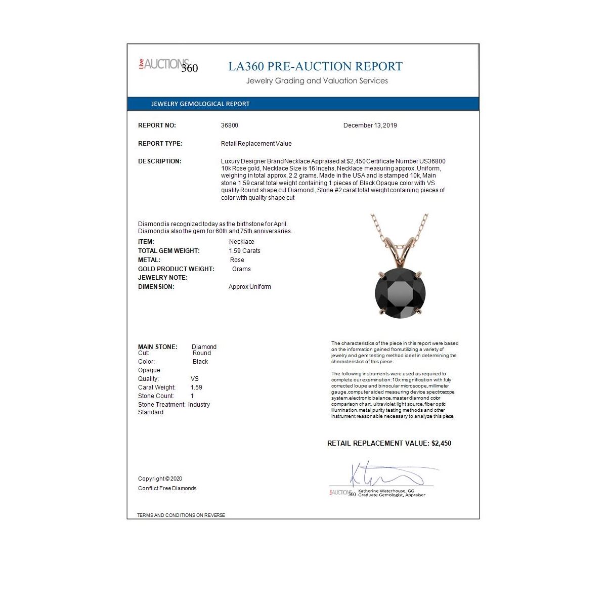 REF-30M3G - SKU: 36800 ---- 1.59 ctw Fancy Black Diamond Solitaire Necklace 10k Rose Gold