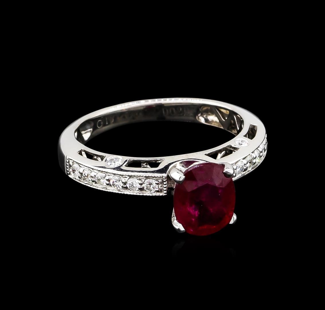 One ring featuring: 18KT white gold weighing 3.88 grams containing one ruby with a total weight of 1.59ct and side diamonds with a total weight of 0.35ct.