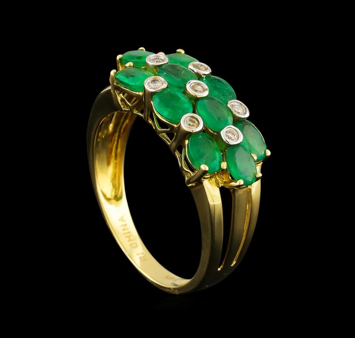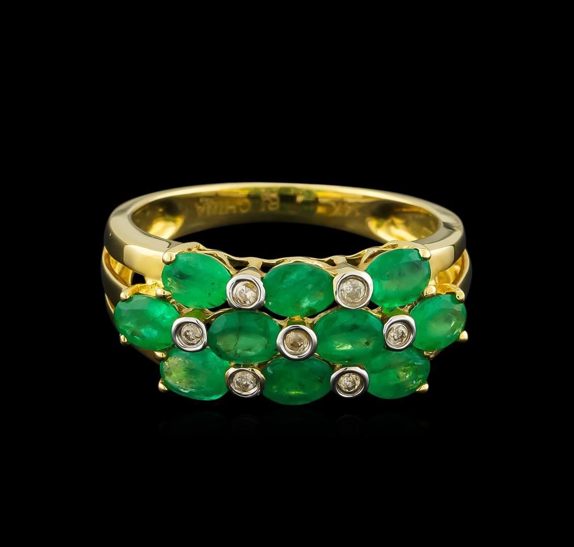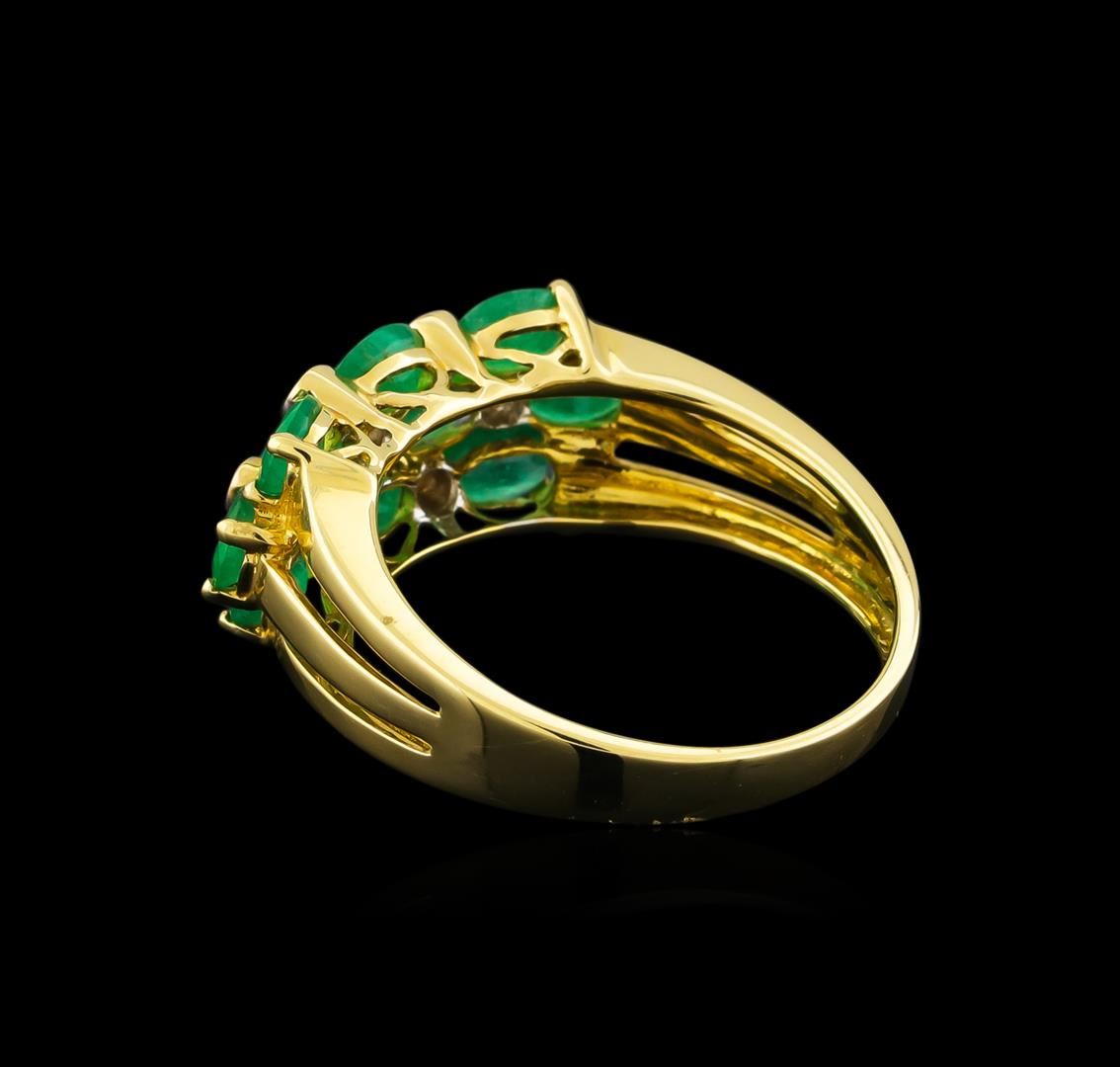 One ring featuring: 14KT yellow gold weighing 2.27 grams containing 10 emeralds with a total weight of 1.59ct and seven round diamonds with a total weight of 0.06ct.