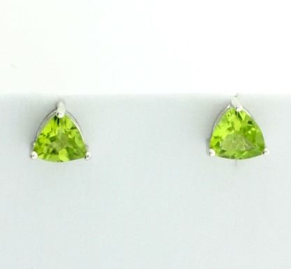 The trillion cut gemstones are set in platinum over sterling silver. 1.2g