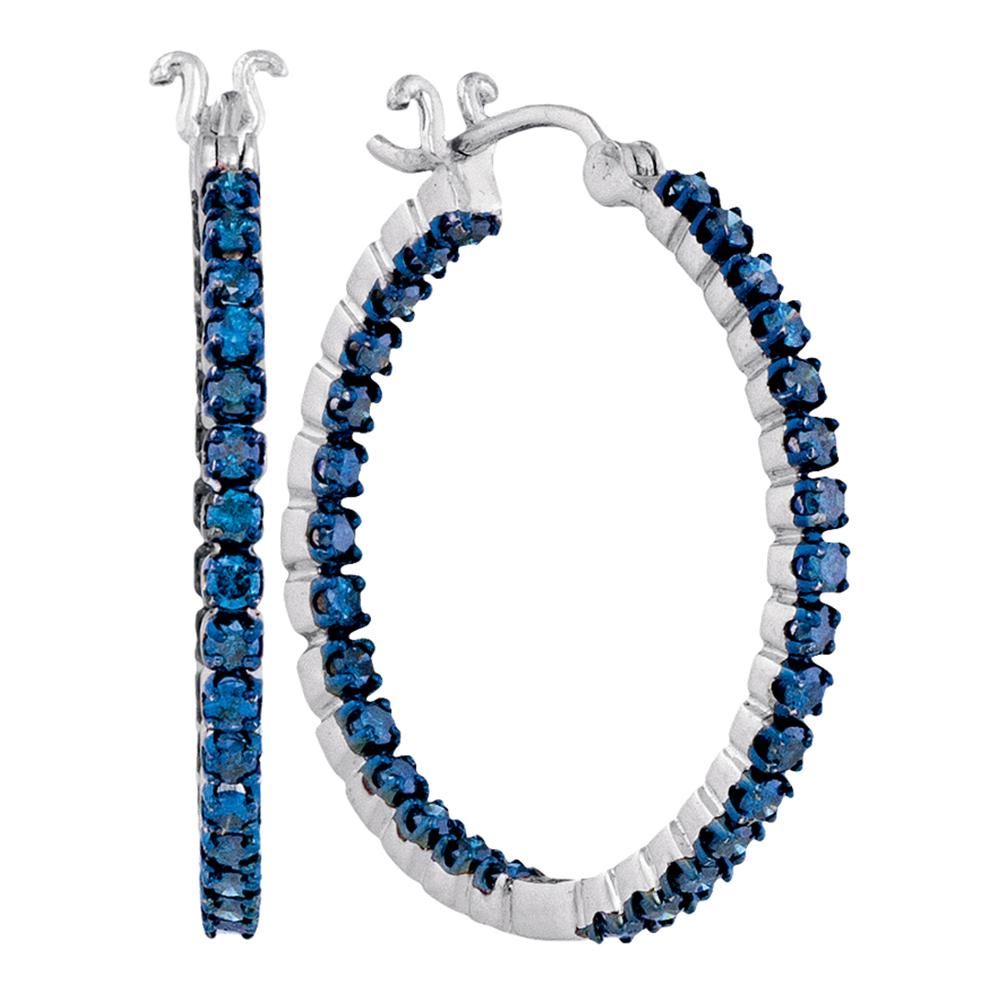 REF-71W9K- SKU: GD85867 ---- 1.6 CTW Blue Color Diamond In/Out Hoop Earrings 10KT White Gold