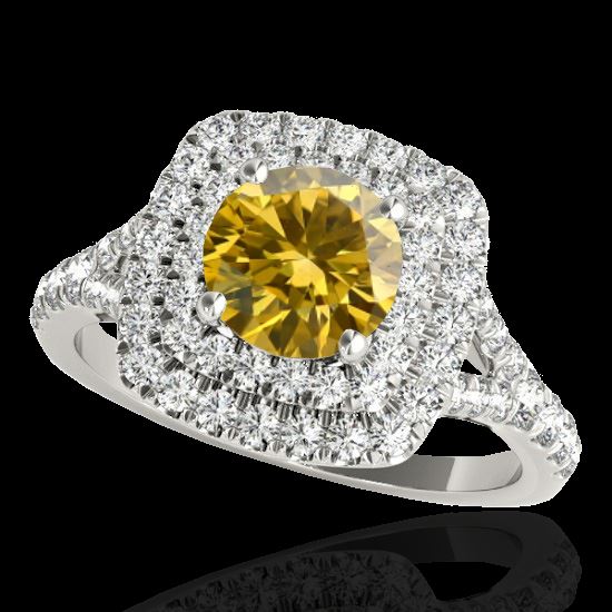 REF-216W4F -33363 ---- 1.6 CTW Certified Si Fancy Intense Diamond Solitaire Halo Ring 10K White Gold ---- Luxury Designer Brand Ring Appraised at $14,300 Certificate Number US33363 10k White gold, Ring Size is 7, Ring measuring approx. Uniform, weighing in total approx. 5 grams. Made in the USA and is stamped 10k, Main stone 1 carat total weight containing 1 pieces of Intense Fancy Yellow color with SI quality Round shape cut Diamond , Stone #2 0.6 carat total weight containing 64 pieces of H-I color with VS/SI quality Round shape cut Diamond