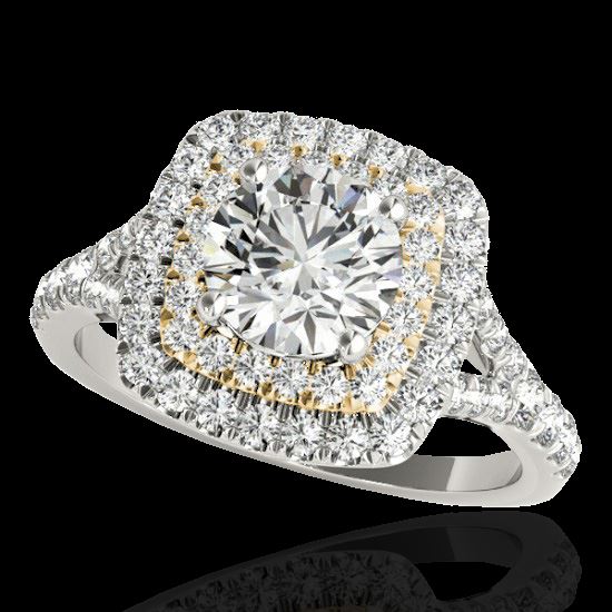 1.6 CTW H-SI/I Certified Diamond Solitaire Halo Ring Two Tone 10K White & Yellow Gold ---- Luxury Designer Brand Ring Appraised Retail Price at $11,900 ---- SKU Number US33360 10k White & Yellow gold Ring Size is 7, Ring measuring approx. Uniform, weighing in total approx. 5 grams. Made in the USA and is stamped 10k, Main stone 1.00 carat total weight containing 1 pieces of H-I color with SI/I quality Round shape cut Diamond , Stone #2 0.6 carat total weight containing 64 pieces of H-I color with VS/SI quality Round shape cut
