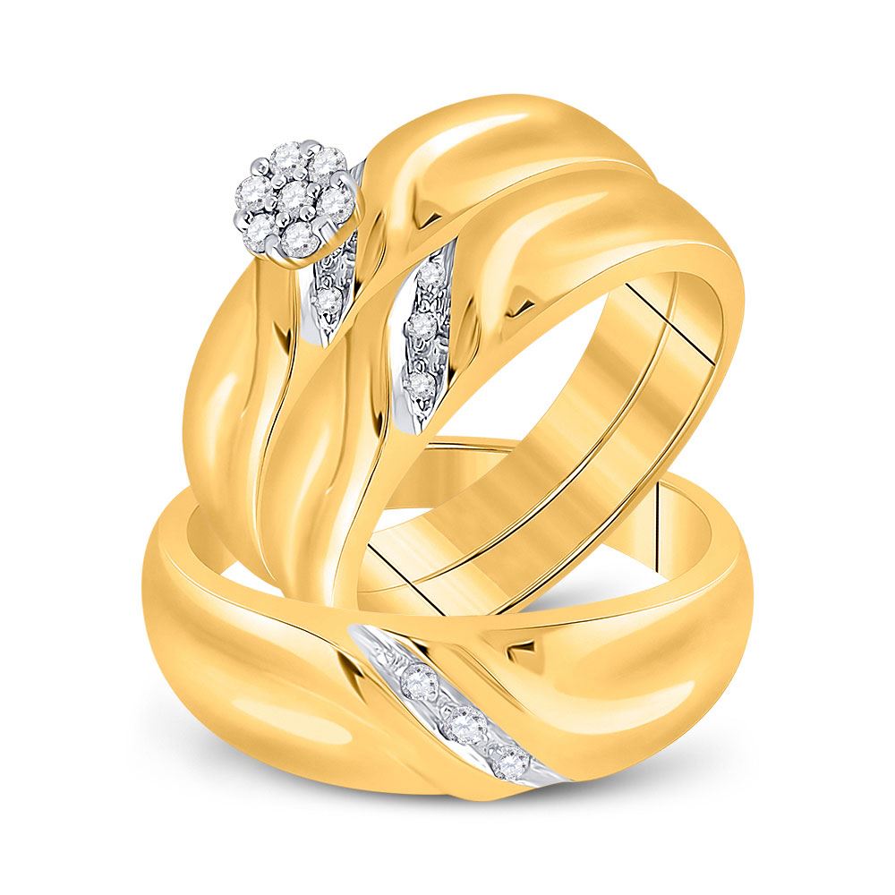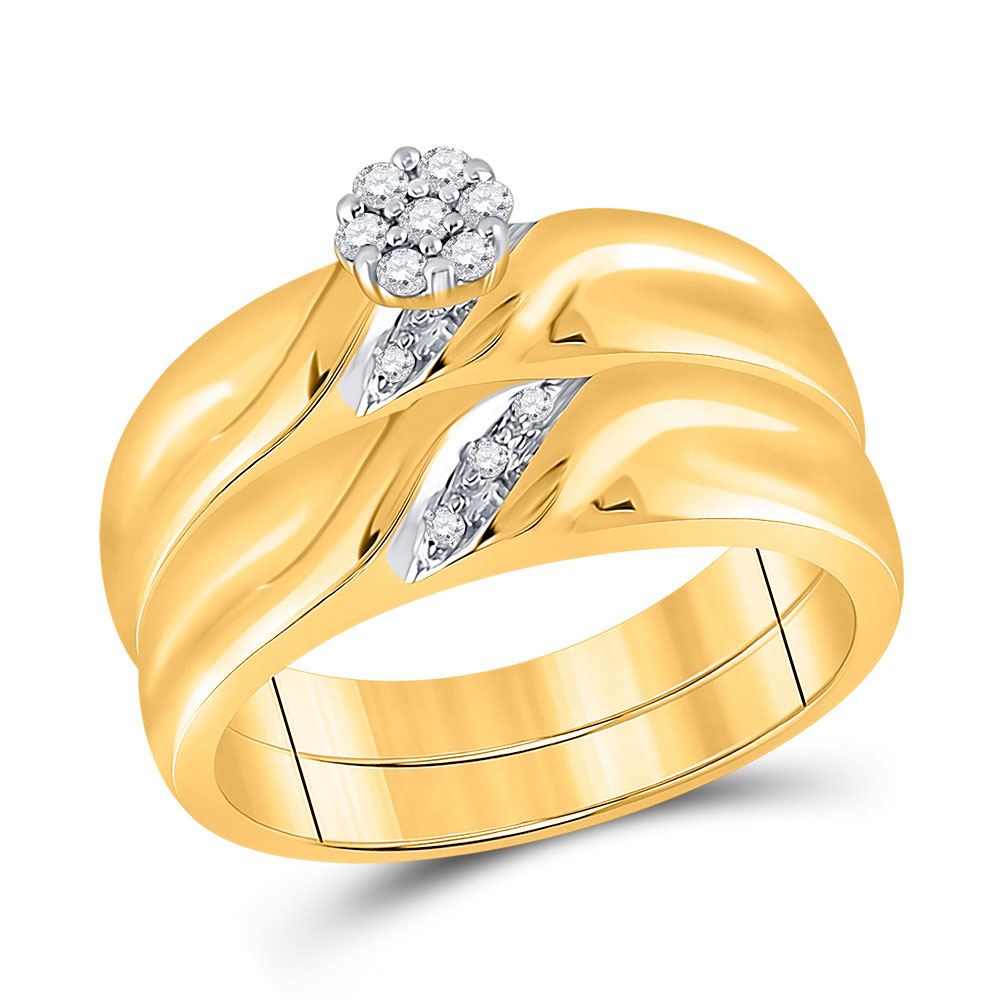 10kt Yellow Gold His & Hers Round Diamond Cluster Matching Bridal Wedding Ring Band Set 1/5 Cttw