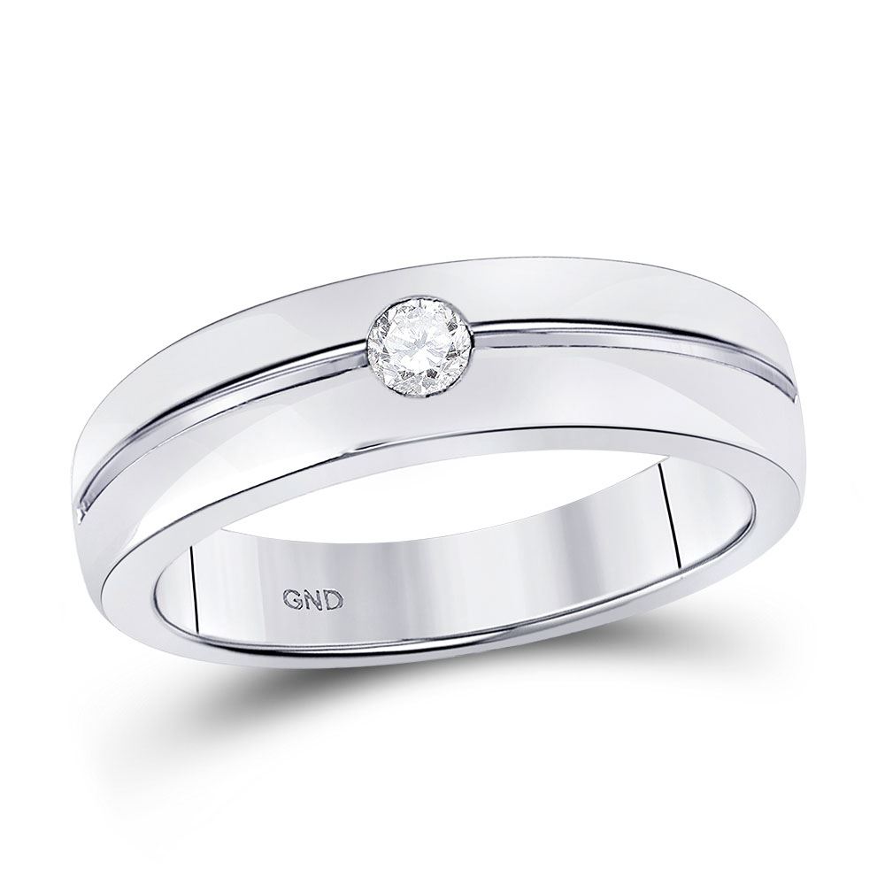 REF-57N3Y ---- 1/6 CTW Mens Round Bezel-set Diamond Wedding Ring 14kt White Gold