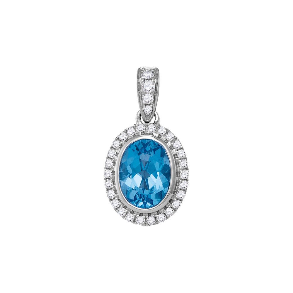 REF-32K3R ---- 1/6 CTW Oval Blue Topaz Solitaire Diamond-accent Pendant 14kt White Gold