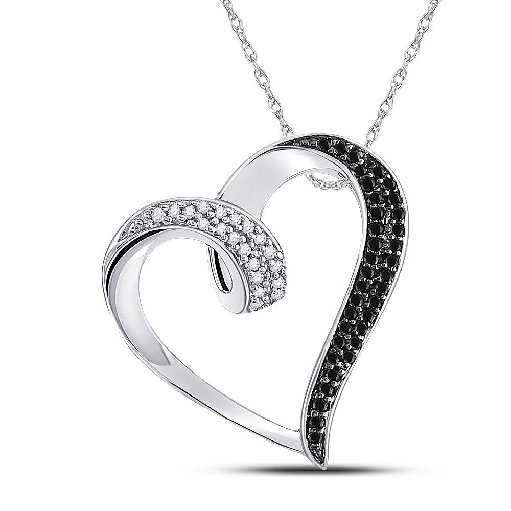 10kt White Gold Womens Round Black Color Enhanced Diamond Heart Pendant 1/6 Cttw