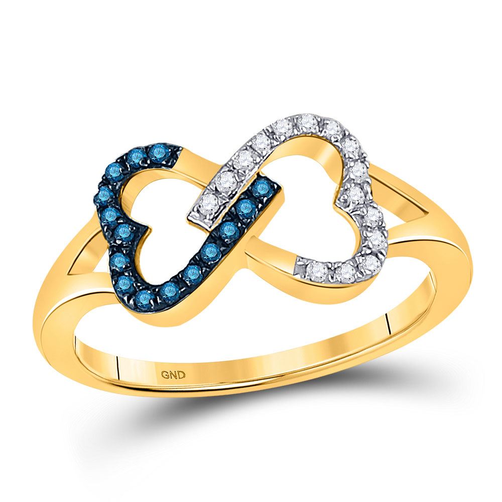 10kt Yellow Gold Womens Round Blue Color Enhanced Diamond Heart Ring 1/6 Cttw