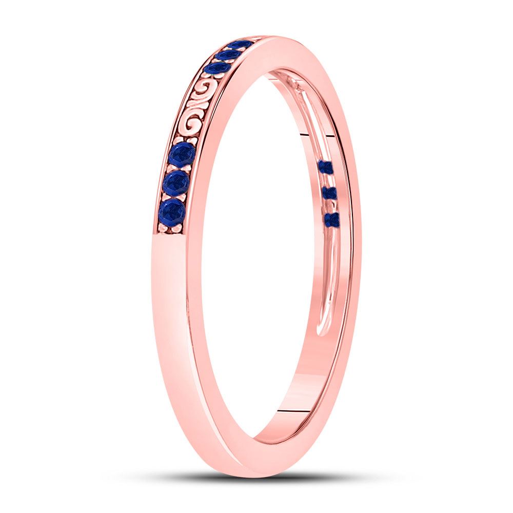 10kt Rose Gold Womens Round Blue Sapphire Flourished Stackable Band Ring 1/6 Cttw