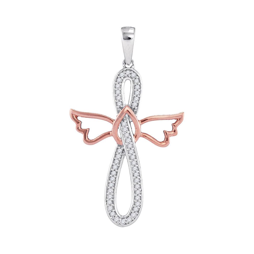 10kt Two-tone Rose Gold Womens Round Diamond Winged Infinity Religious Cross Pendant 1/6 Cttw