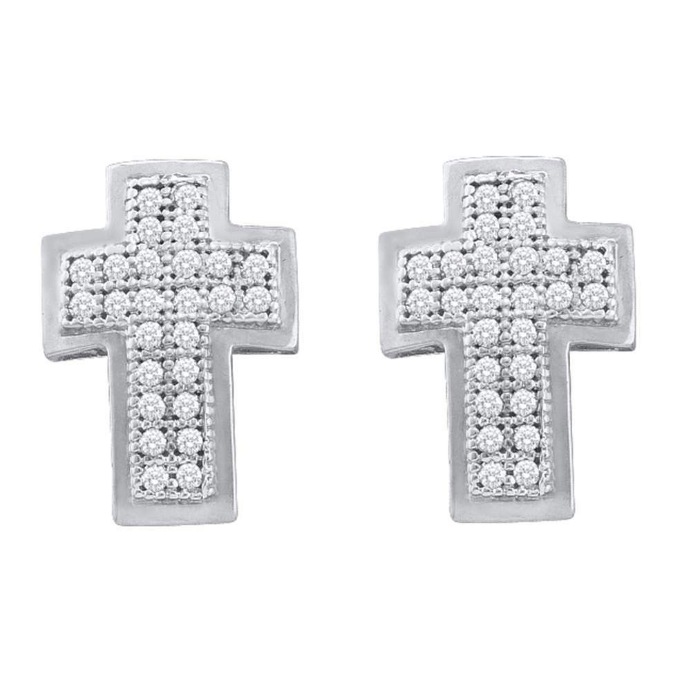 10kt White Gold Womens Round Diamond Cross Religious Stud Earrings 1/6 Cttw