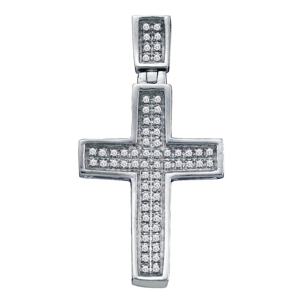 10kt White Gold Mens Round Diamond Small Cross Charm Pendant 1/6 Cttw