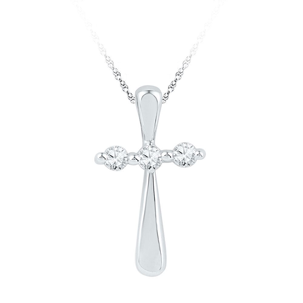 10kt White Gold Womens Round Diamond Cross Religious Pendant 1/6 Cttw