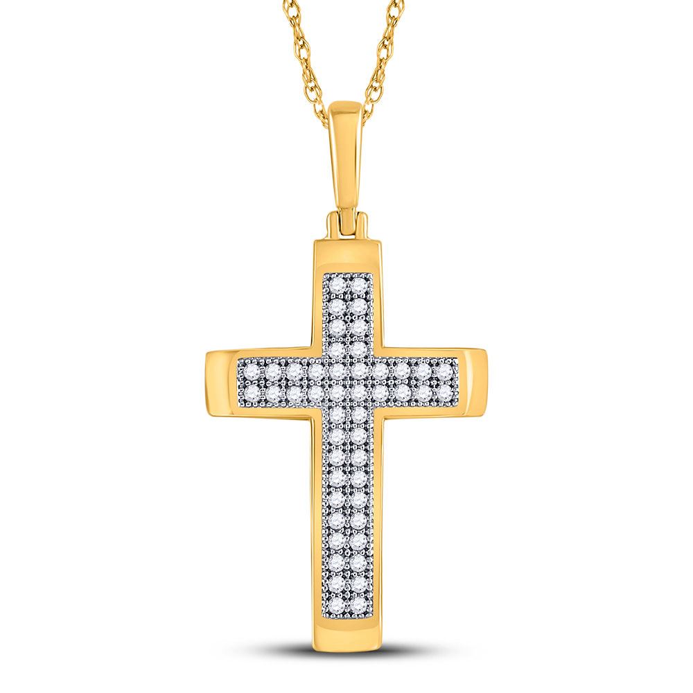 REF-10H8W ---- 1/6 CTW Round Diamond Cross Religious Pendant 10kt Yellow Gold