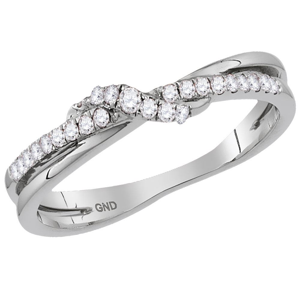 14kt White Gold Womens Round Diamond Crossover Stackable Band Ring 1/6 Cttw