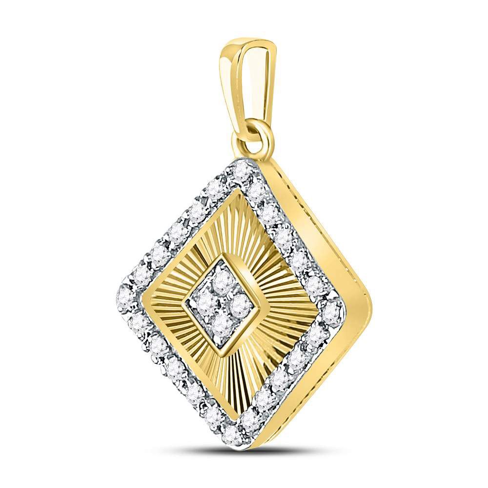10kt Yellow Gold Womens Round Diamond Diagonal Square Pendant 1/6 Cttw